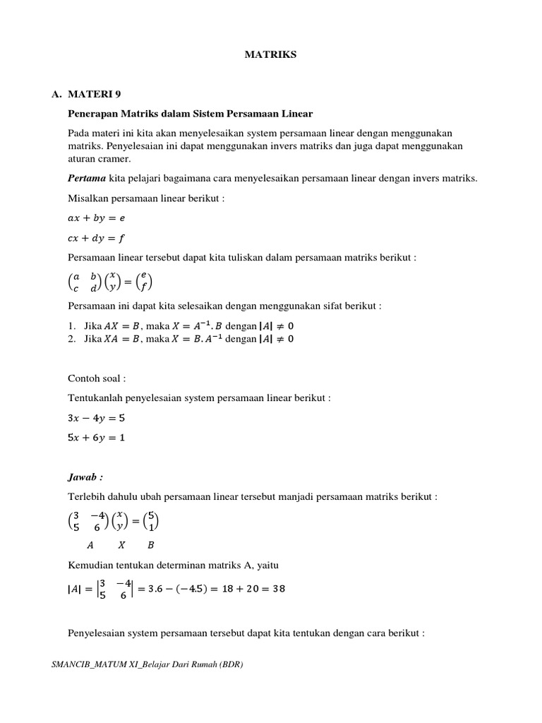 Penerapan matriks dalam menyelesaikan sistem persamaan akan kamu pelajari di bab ini.