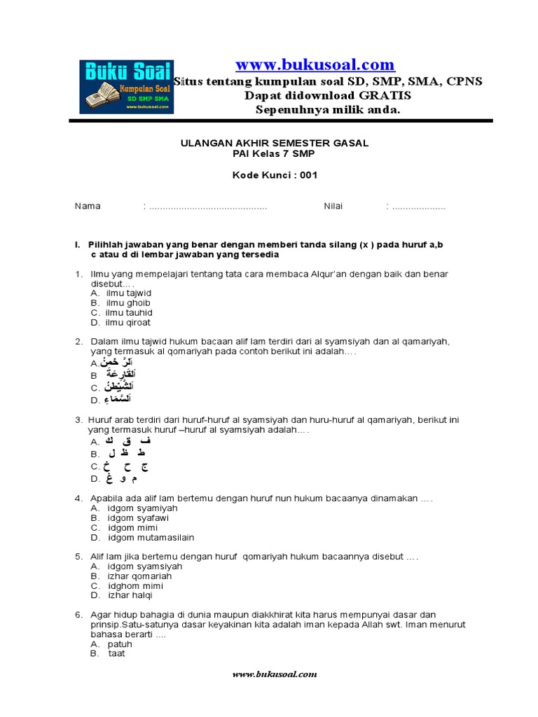 Soal uas pai kelas 7 semester 2 kurikulum 2013. Maybe you would like to learn more about one of these? We did not find results for: Check spelling or type a new query.